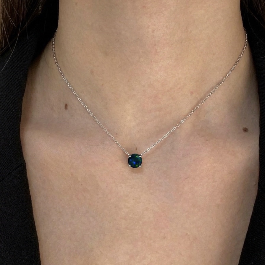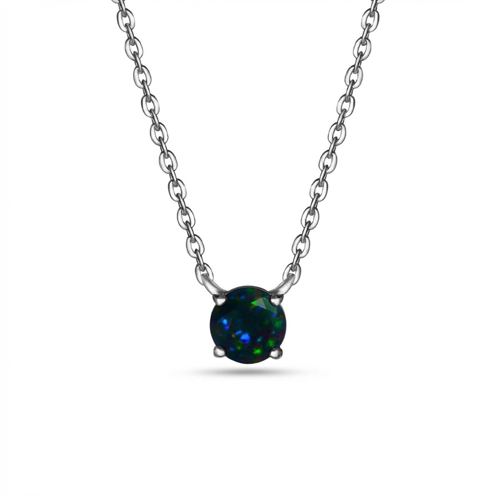 Базовое, минималистичное, но необычное колье Вальс с черным опалом. Камень переливается от черного до сине-зеленого или красного. Чтобы выбрать именно тот перелив, который понравится Вам, оформите заказ и согласуйте с менеджером оттенок перед отправкой.